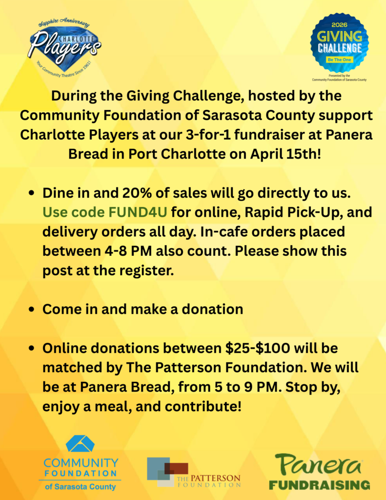 Donate at https://www.givingchallenge.org/organizations/charlotte-players-inc from Noon to Noon